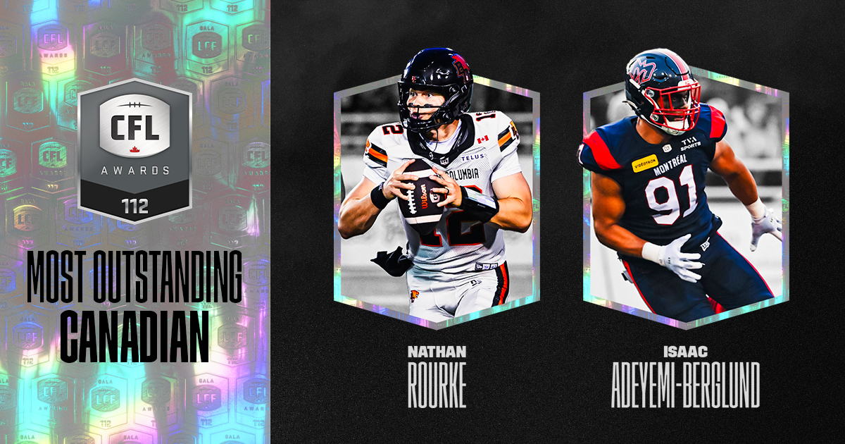 - Most Outstanding Canadian | Nathan Rourke (BC) | Isaac Adeyemi-Berglund (MTL)