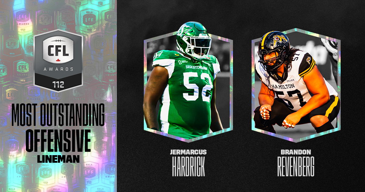 One of the leaders of Hamilton’s offensive line, Brandon Revenberg helped pave the way for Bo Levi Mitchell to lead the CFL in passing yards (5,296) and touchdowns (36), while Greg Bell notched 1,038 rushing yards. Revenberg has been a finalist for the league’s top offensive lineman on three previous occasions (2018, 2021-22).