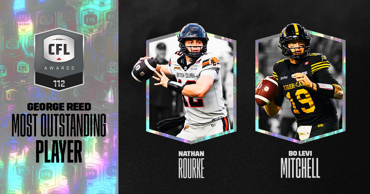 TORONTO (October 30, 2025) – A pair of quarterbacks are the finalists for the Canadian Football League’s (CFL) highest individual honour as the George Reed Most Outstanding Player. BC Lions pivot Nathan Rourke has never been a finalist for the award, while his Hamilton Tiger-Cats counterpart, Bo Levi Mitchell, is vying to become the fifth player to capture the title on three or more occasions.