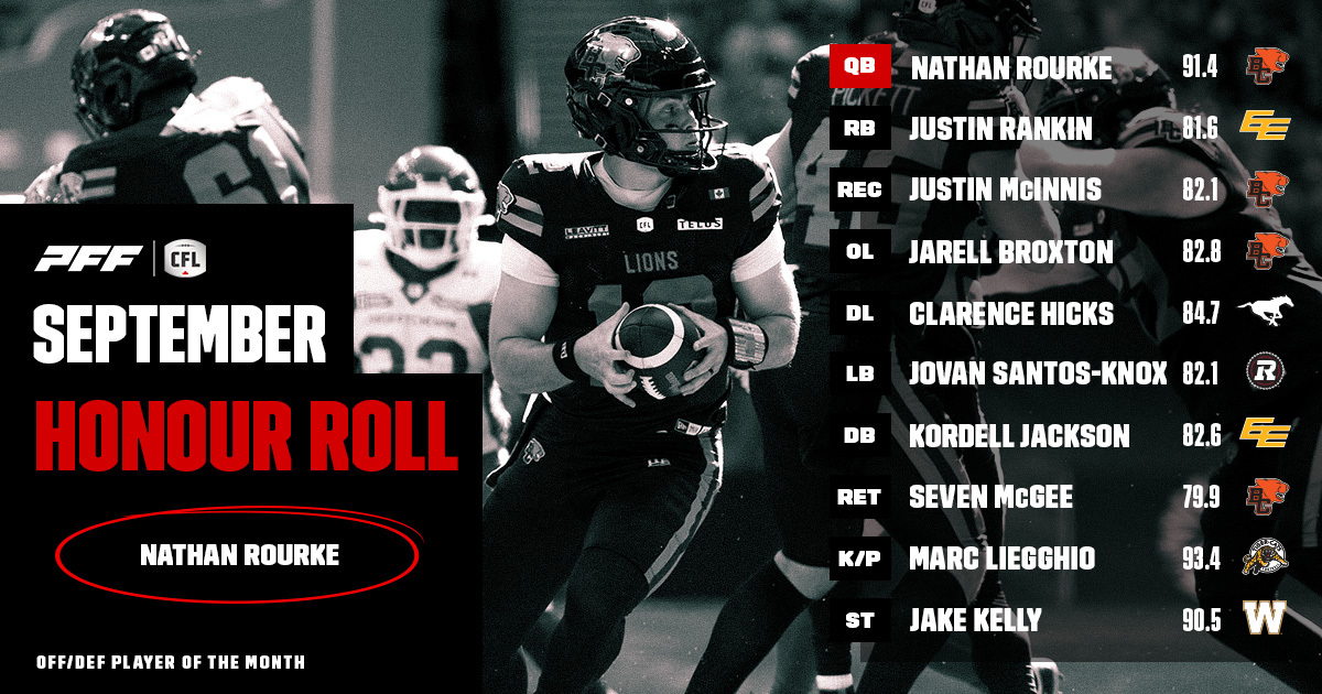 CFL HONOUR ROLL: SEPTEMBER – ROURKE TAKES HOME PLAYER OF THE MONTH