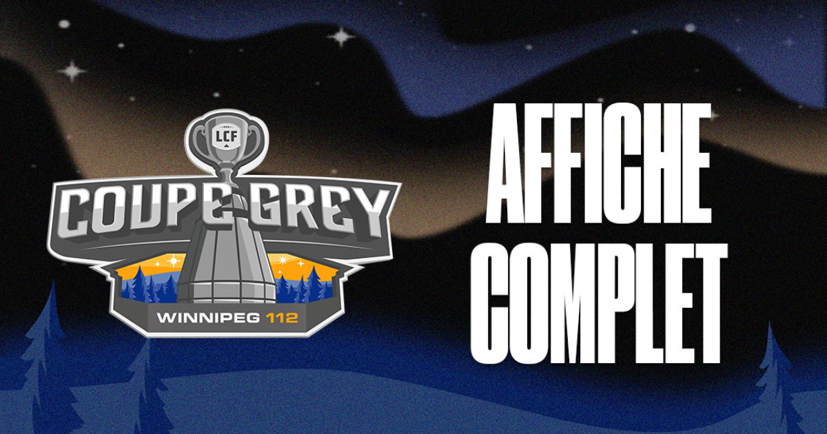 WINNIPEG (4 novembre 2025) – La Ligue canadienne de football (LCF) et le Winnipeg Football Club sont fiers d’annoncer que la 112e Coupe Grey, qui aura lieu le dimanche 16 novembre au Princess Auto Stadium, sera disputée à guichets fermés. Des partisans de partout au pays se rassembleront pour assister à la consécration des champions de la LCF de cette année et pour célébrer l’un des événements sportifs les plus emblématiques du Canada.