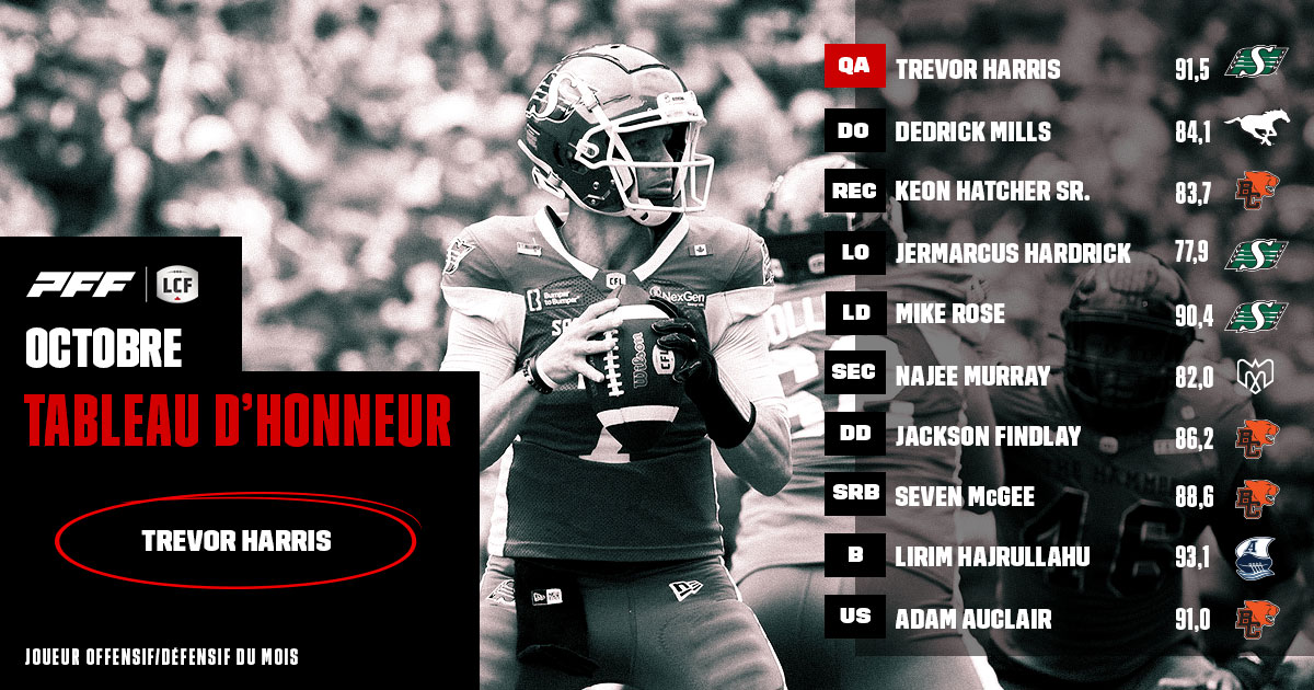 Tableau d’honneur de la LCF : Octobre – Harris est le joueur du mois