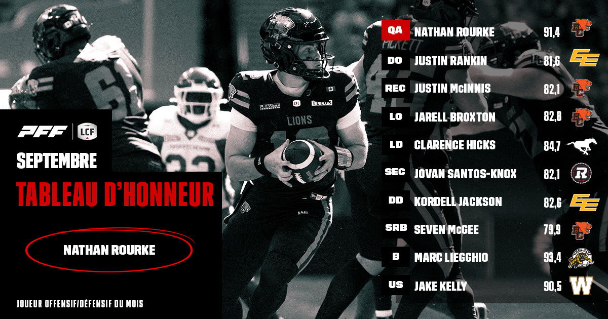 Tableau d’honneur de la LCF : Septembre – Rourke est le joueur du mois